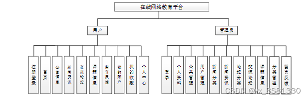 按照在线网络教育平台的角色,我划分为了系统用户管理模块和管理员管理模块这两大部分。
