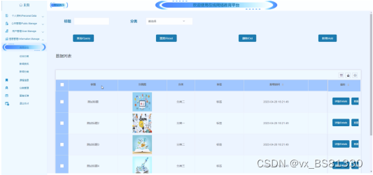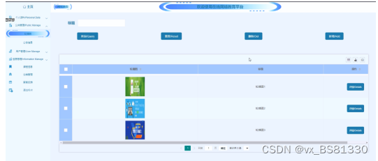 (2)公共管理:管理员可以对系统前台展示的轮播图以及公告信息进行增伤改查,方便用户进行查看。