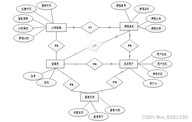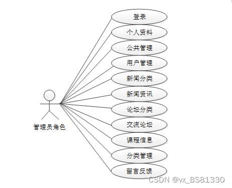web后台管理上的管理员是维护整个在线网络教育平台中所有数据信息的。管理员角色用例如图2-5所示。