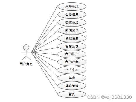 通过2.3功能的分析,得出了本在线网络教育平台的用例图: