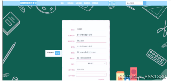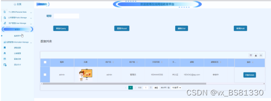 (3)用户管理:管理员可以对在线网络教育平台中的管理员以及前台注册的用户进行审核管理。