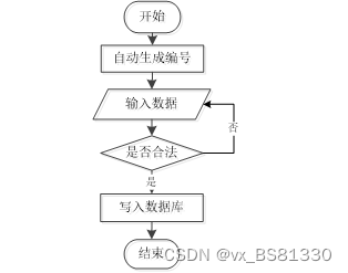 用户成功登入系统后就能够实现增加数据的操作,增加数据的编号是特定的,系统生成,用户不能随意填写,除了编号以外,其他增加信息用户自己填写,填写后的信息经过系统验证,验证合法通过就显示增加数据成功了,相反的话,就没有增加成功,图2-1显示的就是在增加数据时的流程。