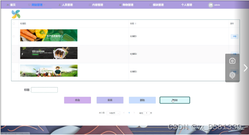 轮播图管理,在轮播图管理页面中可以对标题、轮播图等信息进行添加,还可在轮播图查询页面进行修改或删除等操作,如图5-3所示。
