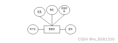 管理员实体主要存储管理信息包括序号、用户名、密码属性。管理员信息属性图如图4-4所示。