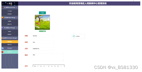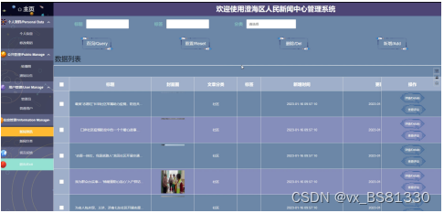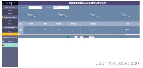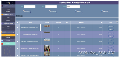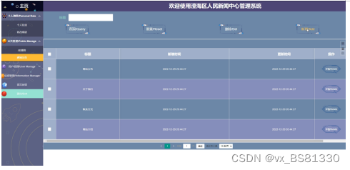 (1)功能要求:可以管理主页,个人资料,公共管理(轮播图,通知公告),用户管理(管理员,普通用户),信息管理(新闻资讯,新闻分类),留言反馈等功能模块。