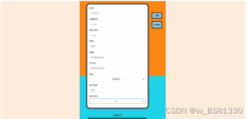 用户管理,管理员在此页面可以查看用户名,昵称,用户姓名,性别等信息,并可根据需要进行查询,重置,删除,新增等操作, 如图5-5,5-6所示。