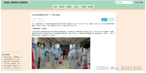新闻资讯,在此页面可以查看推荐的资讯信息,并通过筛选,排序等操作进行资讯信息查询,进入资讯详情界面后可以进行收藏,点赞,评论等操作,如图5-13,5-14所示。