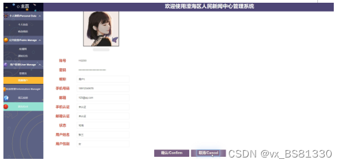 3、功能的完善性:可以管理主页,个人资料,公共管理(轮播图,通知公告),用户管理(管理员,普通用户),信息管理(新闻资讯,新闻分类),留言反馈等模块的修改维护操作。