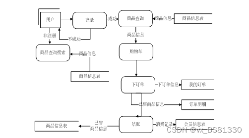 (2)用户查看商品:用户进行商品信息的阅览,通过发现喜欢的商品后可以购买+评论+收藏。