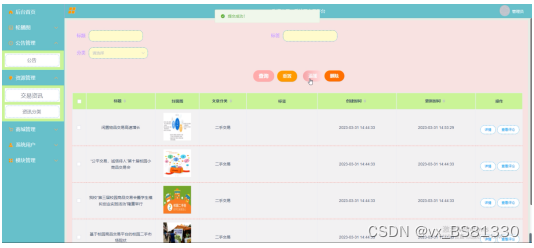 (2)资源管理:管理员在后台可以对二手校园交易平台中显示的交易资讯信息进行增删改查。