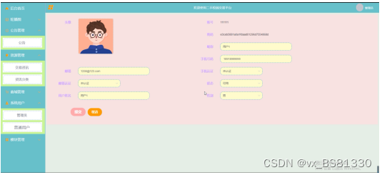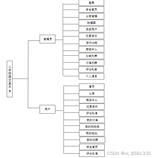 按照二手校园交易平台的角色,我划分为了用户管理模块和管理员管理模块这两大部分。