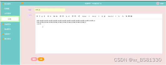 二手校园交易平台中的管理人员是可以对公告进行添加公告消息的,界面如下图4-9所示。