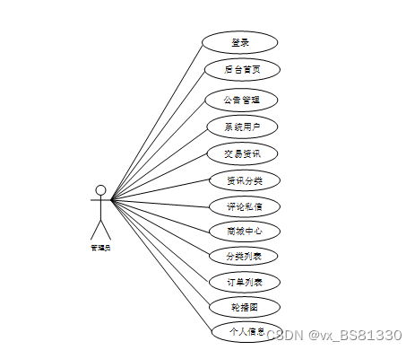 web后台管理上的管理员是维护整个二手校园交易平台中所有数据信息的。管理员角色用例如图2-5所示。