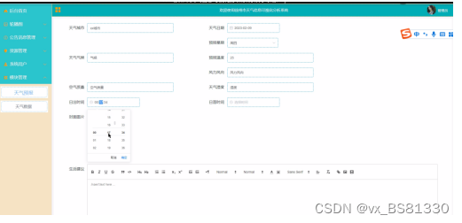 天气信息管理:对天气信息信息进行维护,添加、删除、修改信息。