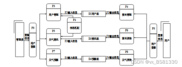 天气信息可视化分析系统总体分为前台用户模块和后台管理员模块。