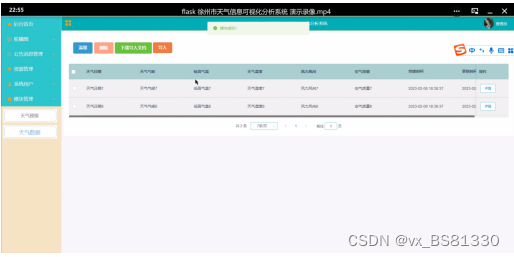 本文围绕基于Flask的徐州市天气信息可视化分析系统展开。先分析研究背景、意义,介绍相关技术如Python、Flask框架、Mysql数据库等。接着阐述系统分析、设计、实现过程,包含各功能模块。最后进行系统测试,虽系统运行正常,但仍有待完善。