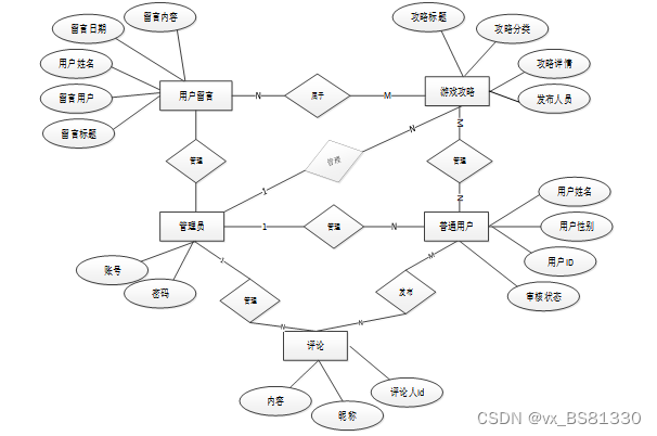 游戏社交网站是一个交流性质的公开平台,会员用户可以在平台上交流,增加用户之间的互动性。但是同时也为了更好的规范留言的内容,给予管理员删除不合适的言论的功能,所以需要专门设计一个留言管理模块,具体的结构图如下:
