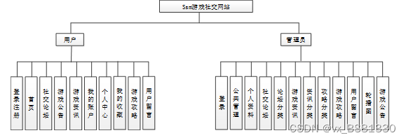 按照游戏社交网站的角色,我划分为了普通用户管理模块和管理员管理模块这两大部分。