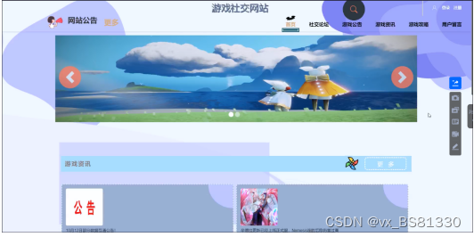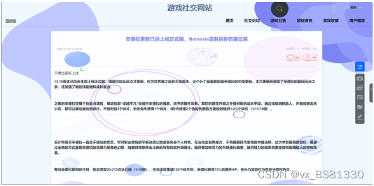 (4)游戏资讯:在首页导航栏上我们会看到“游戏资讯”这一菜单,我们点击进入进去以后,会看到所有管理员在后台发布的游戏资讯信息,能够对喜欢的游戏资讯进行点赞,如果下次想要更快的找到这篇资讯,也可以进行收藏、评论;