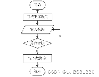 用户成功登入系统后就能够实现增加数据的操作,增加数据的编号是特定的,系统生成,用户不能随意填写,除了编号以外,其他增加信息用户自己填写,填写后的信息经过系统验证,验证合法通过就显示增加数据成功了,相反的话,就没有增加成功,图2-1显示的就是在增加数据时的流程。