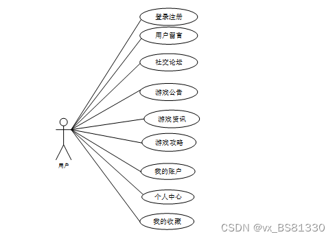 通过2.3功能的分析,得出了本游戏社交网站的用例图: