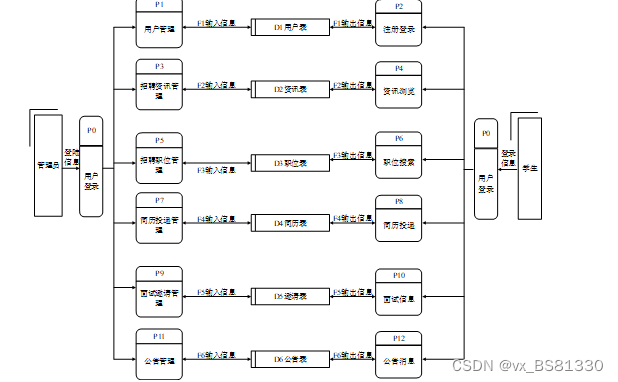 招聘资讯管理模块:管理员后台进行招聘资讯的发布更新,学生用户在系统前台可以对最新的资讯进行浏览查看等操作。