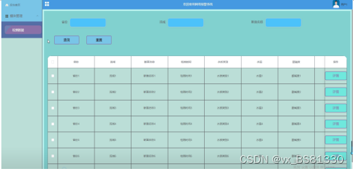 水质检测数据信息:存储平台内的数据。包括水质溶解量、河流酸碱度、水质浊度、水质温度等数据项。