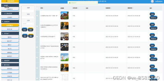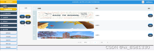 (3)资源管理:在“资源管理”这一菜单下,我们会看到办学理念+新闻分类这两个子菜单,管理员能够对这两个模块进行增删改查操作;