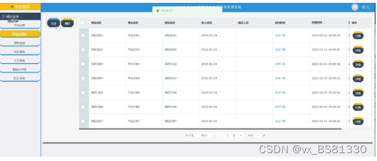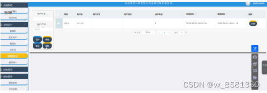 (2)系统用户:当点击“系统用户”这一菜单的时候,会出现管理员+院长用户+副院长+系主任+教师用户+课程组长这六个子菜单,可以对这六个模块进行增删改查操作;