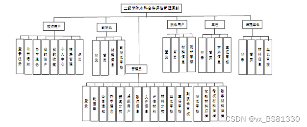 按照二级学院本科合格评估管理系统的角色,我划分为了管理员、院长用户、副院长、系主任、教师用户以及课程组长这六大部分。