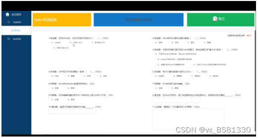 随着计算机互联网技术的迅猛发展,各行各业都已经实现采用计算机相关技术对日益放大的数据进行管理。该课题为设计一个考试系统,主要为了方方便考生用户线上参加考试,查询成绩,也方便教师在线设计题库,阅卷改卷,维护、统计成绩,对人员进行更加方便快捷的管理,提高考试、阅卷的效率。