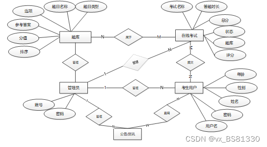 考生用户:用于记录用户的各种信息,包括用户名、密码、基本情况信息等数据项。