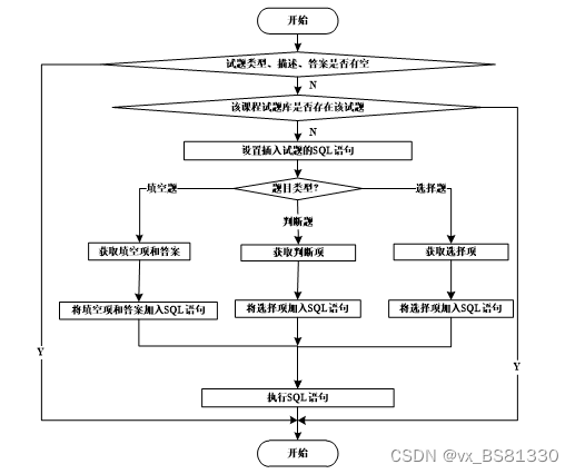 此页面的关键是编写试题信息,单击提交按钮以完成信息的添加。如果未写入完整的试题信息,例如,如果未写入试题编号,系统将给出相应的错误提示,并且无法成功输入。数据以概念的形式以onsubmit =“return checkForm()”的形式写入以进行检查,checkForm()函数是一种用于写入数据的不同类型的校对方法,是不是为空也是经过form表单中的onsubmit=”return checkForm()来检查。