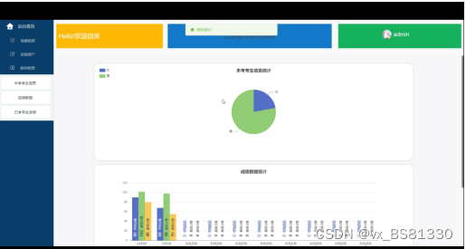 管理员维护已考以及未考学生的信息,统计数据将关联到后台首页中的管理图中,如下图所示。