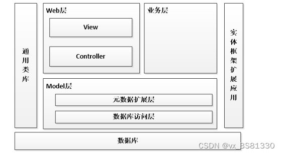 本考试系统的架构设计主要分为可以3层,主要有Web层,业务层,Model层。其中web层还包括View层和Controller层,Model层包括元数据扩展层和数据访问层。