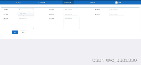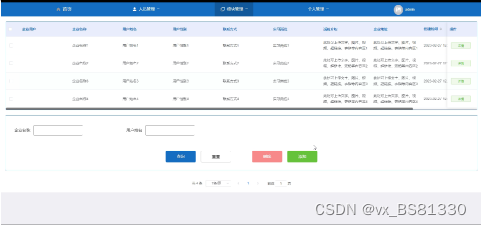 企业信息:管理员在这一栏可以通过搜索查看企业用户、企业名称、用户名称、用户性别、联系方式、实习岗位、岗位介绍等详细描述信息。可以进行查询、重置、删除、添加等操作,如图5-9,5-10所示。