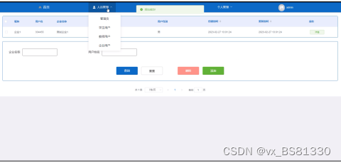 3、功能的完善性:拥有首页、个人管理、人员管理(学生用户、教师用户、企业用户、管理员)模块管理(学生信息、教师信息、企业信息、学习岗位、类型管理、报名信息、企业任务、教师任务)等功能的修改维护操作。