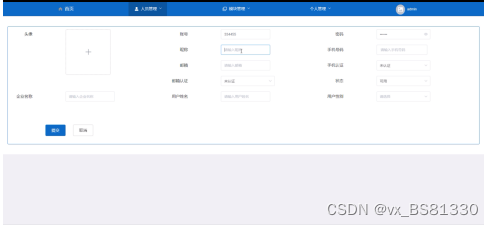 管理员进入系统后台可以查看:后台首页、个人管理、人员管理(学生用户、教师用户、企业用户、管理员)模块管理(学生信息、教师信息、企业信息、学习岗位、类型管理、报名信息、企业任务、教师任务)等功能模块。还可进行相应的操作,如图5-2所示。