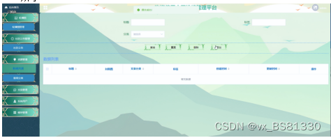 此功能为管理员的功能,管理员点击“内容管理”菜单后,会展示出留言板+留言分类两个子菜单,任何可以对其进行增删改查操作;其界面展示如下图4.12所示。
