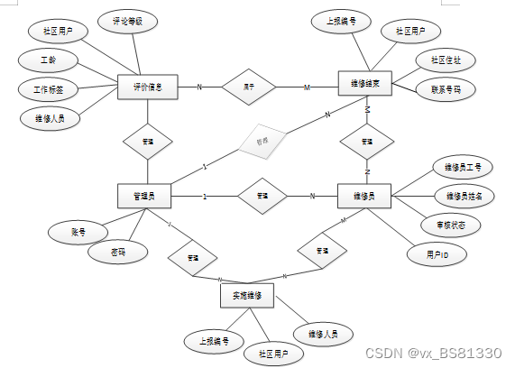 下面是整个小区维修管理平台中主要的数据库表总E-R实体关系图。