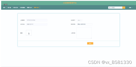 (8)维修上报:在“维修上报”下拉查看具体某个维修上报下方点击按钮,具体再输入上报编号、社区住址、社区用户、联系电话、上报内容等信息进行提交;