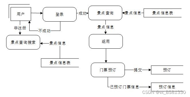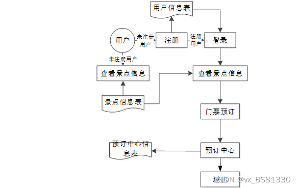 开发周口旅游大全微信小程序最主要的一个目的就是实现用户对景点门票的预订,图2-3就是系统的数据流图。