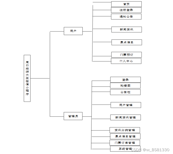 周口旅游大全微信小程序我划分为了用户管理模块和管理员模块这两大部分。