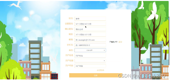 用户在填写数据的时候必须与注册页面上的验证相匹配否则会注册失败,注册页面的表单验证是通过JavaScript进行验证的,用户名的长度必须在6到18之间,邮箱必须带有@符号,密码和密码确认必须相同,你输入的密码,系统会根据你输入密码的强度给出指定的值,电话号码和身份证号码必须要求输入格式与生活相符合,当你前台验证通过的时候你点击注册,表单会将你输入的值通过name值传递给后台并保存到数据库中。