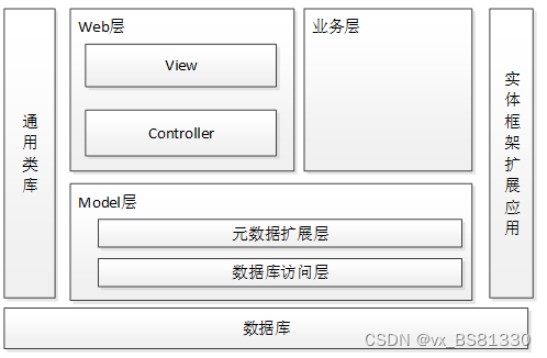 本社区疫情防控管理系统的架构设计主要分为可以3层,主要有Web层,业务层,Model层。其中web层还包括View层和Controller层,Model层包括元数据扩展层和数据访问层。