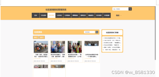 随着计算机互联网技术的迅猛发展,各行各业都已经实现采用计算机相关技术对日益放大的数据进行管理。该课题是社区疫情防控管理系统为核心展开的,主要是为了实现疫情防控信息化管理的需求。