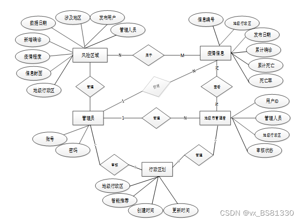 图3-2 新冠疫情风险区域管理系统 总E-R关系图