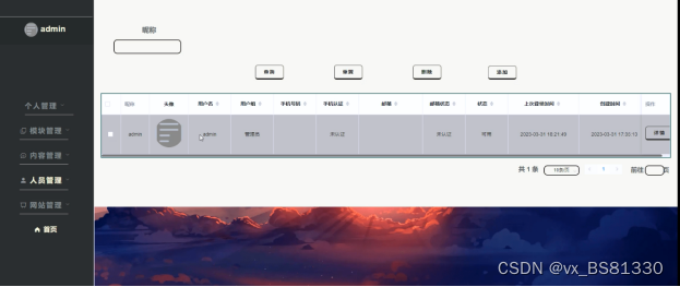 管理员管理模块: