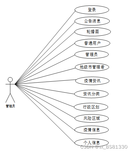 图2-2 新冠疫情风险区域管理系统 管理员角色用例图
