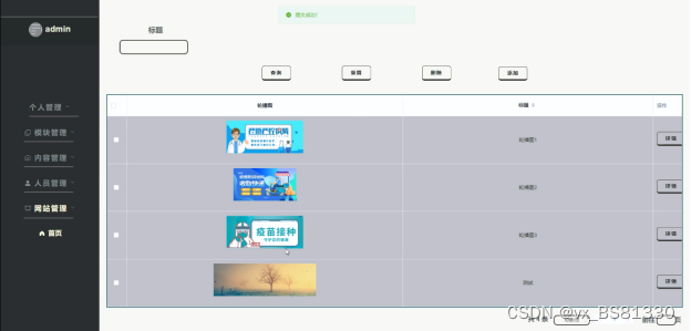 网站管理模块是对公告消息和轮播图的设置,只有管理员权限才能进行更新维护。界面如下图4-11所示。